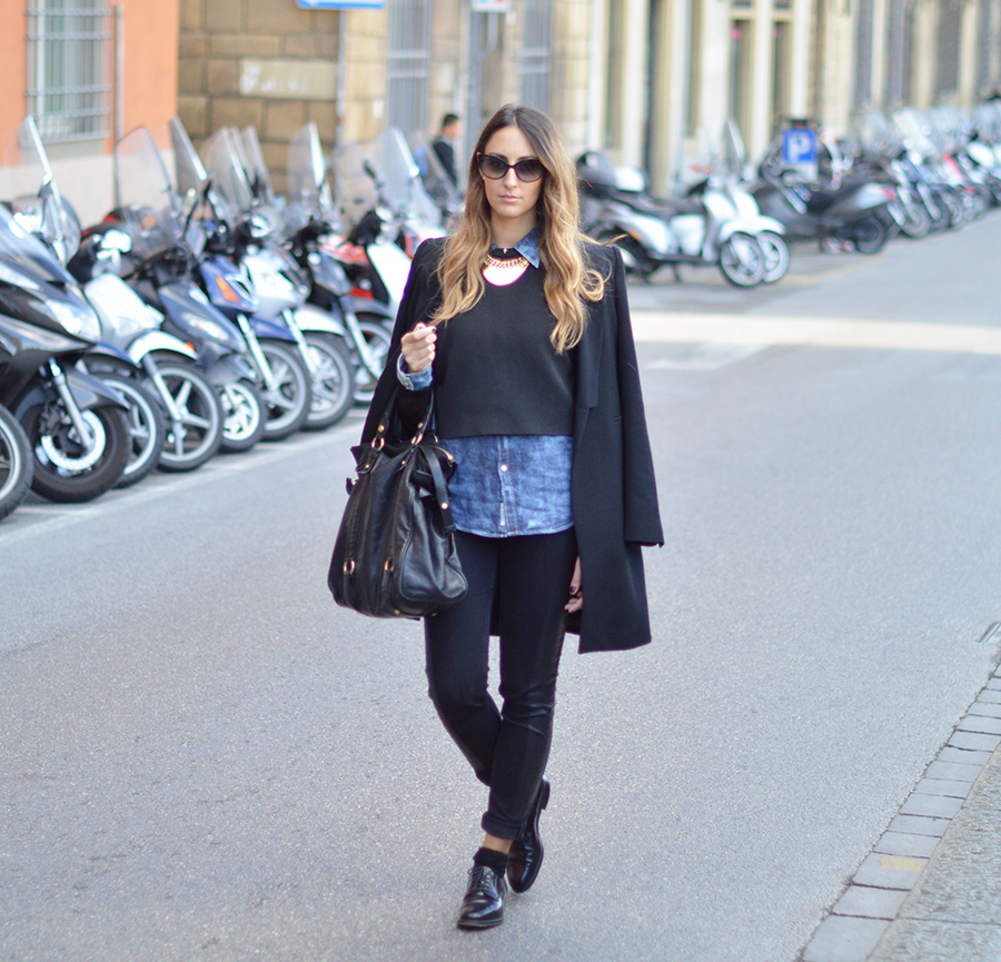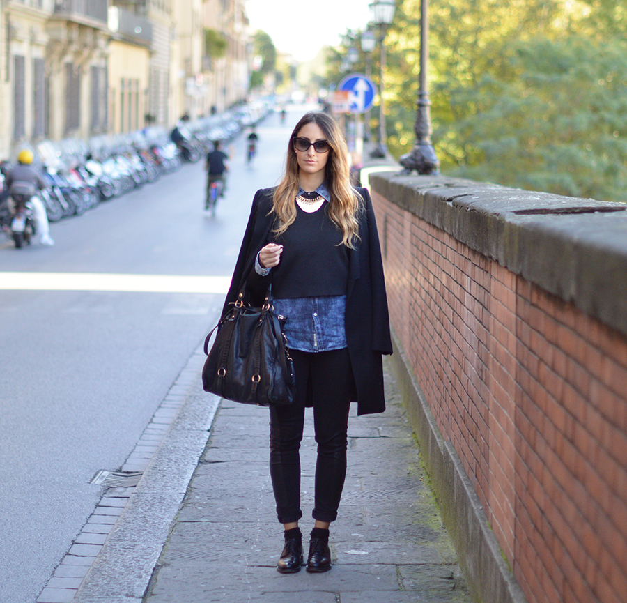 On Wednesday I was invited to ESE, European School of Economics in Florence to tell my experience as a blogger and how it changed my life since I and Riccardo decided to begin this adventure. It ‘was a really good experience, for us it was an honor to take part in a lesson on our business, we were really happy and we thank everyone for giving us this wonderful opportunity. For the occasion I chose a comfortable and easy look made from a coat, denim shirt and sweatshirt, black pants and lace up shoes.